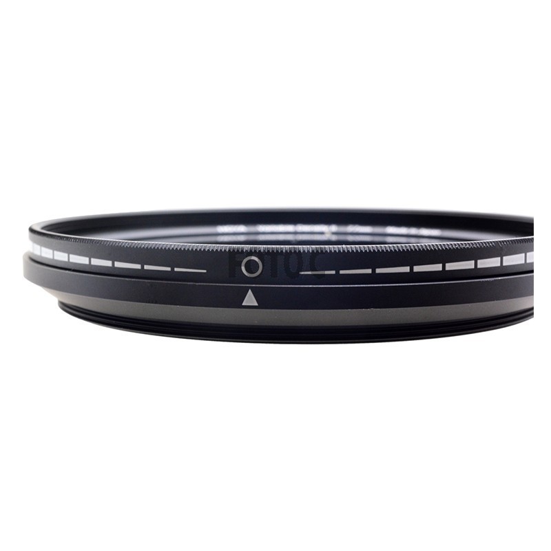 Filteret har en variabel densitet, der kan indstilles trinløst til at give en reduktion i lysmængden fra 1,5 til 9 blænder/stops.