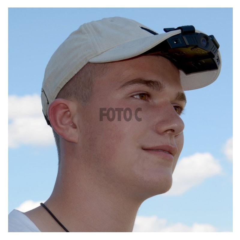 Tag billeder eller optag video i Full HD med dette kamera med indbygget LED lys til montering på en cap.