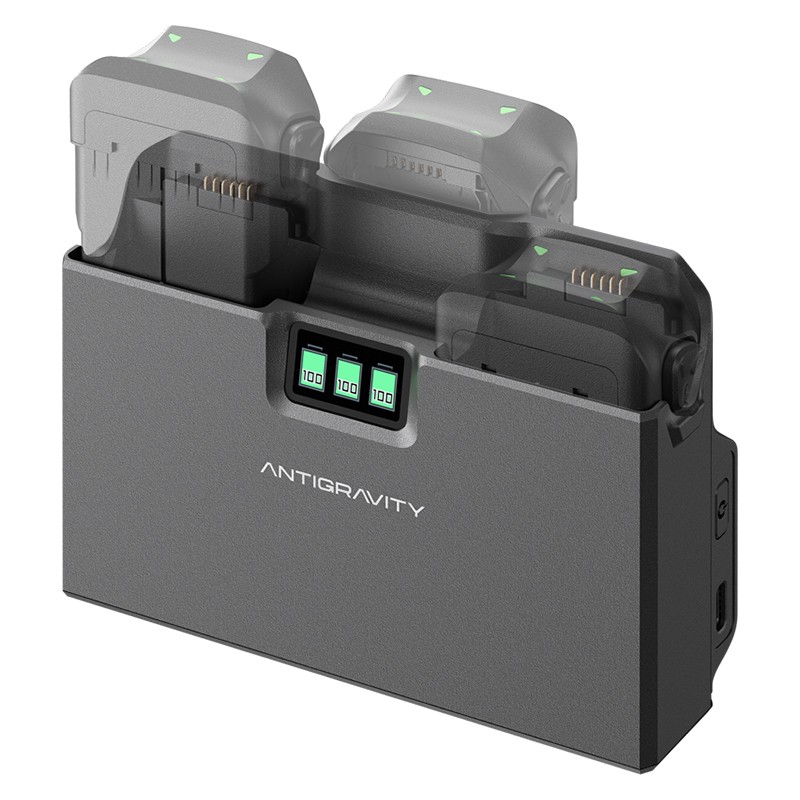 A1 Charging Hub oplader ét batteri på 45 minutter eller tre batterier i rækkefølge på 135 minutter.