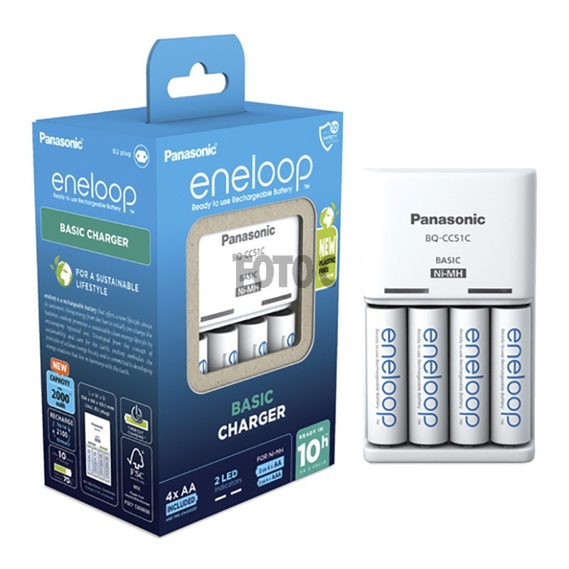 Lader til genopladelige batterier. Kan lade 2 eller 4 AA-batterier samt 2 eller 4 AAA-batterier.