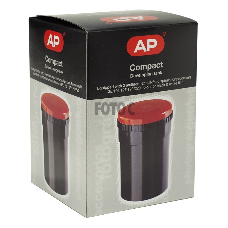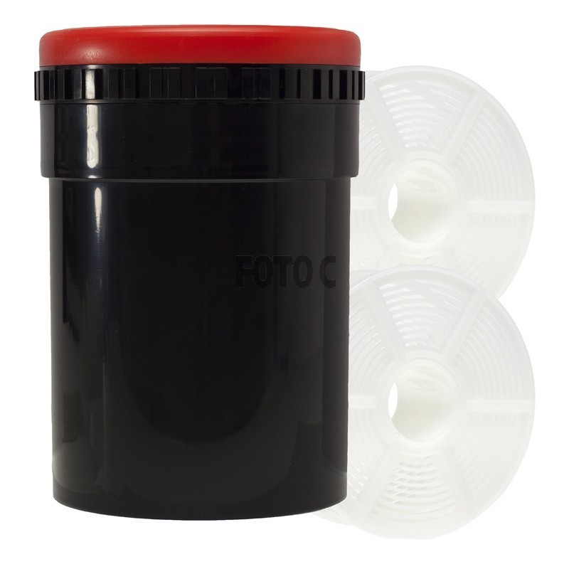 Fremkalder-tank til fremkaldelse af 2 stk. 35mm-film samtidig eller 1 medium-format film.