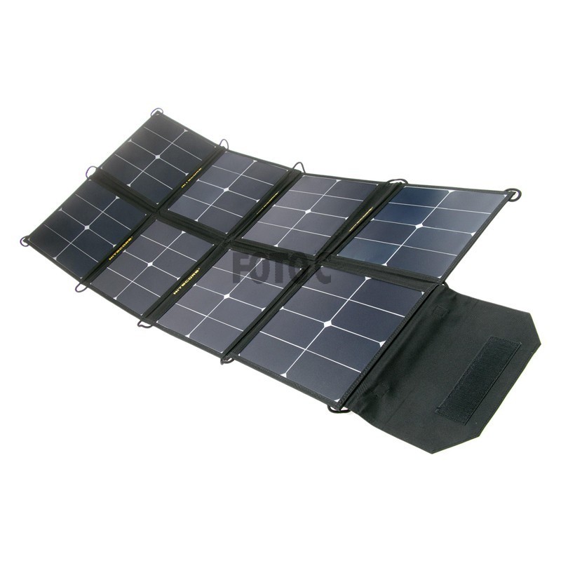 Dette transportable, sammenklappelige sol-panel omdanner solens lys til strøm, der kan bruges til at lade mobiltelefoner, batterier og andet elektrisk udstyr.