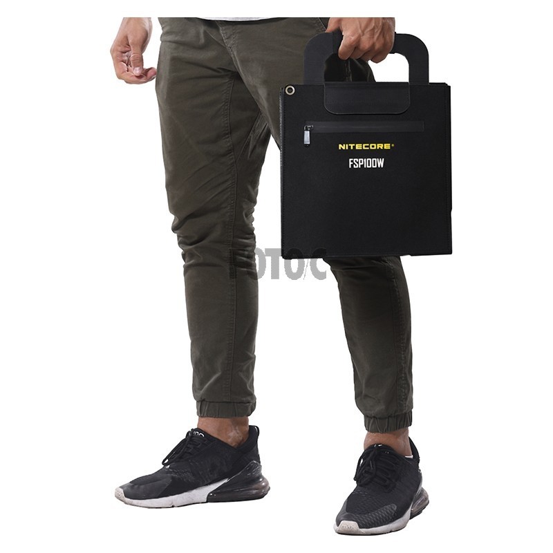 Panelet udgør sammenfoldet sin egen bæretaske. Selve panelet er vandtæt og kan bruges i alt slags vejr. Portene er stænktætte, men ikke fuldt vandtætte, så fuld neddypning i vand frarådes.