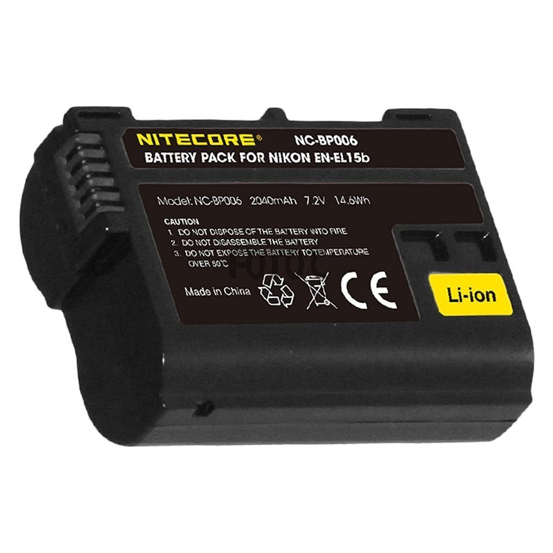 Batteri på 2.040 mAh, der passer til udstyr, der bruger Nikons EN-EL15b-batteri.