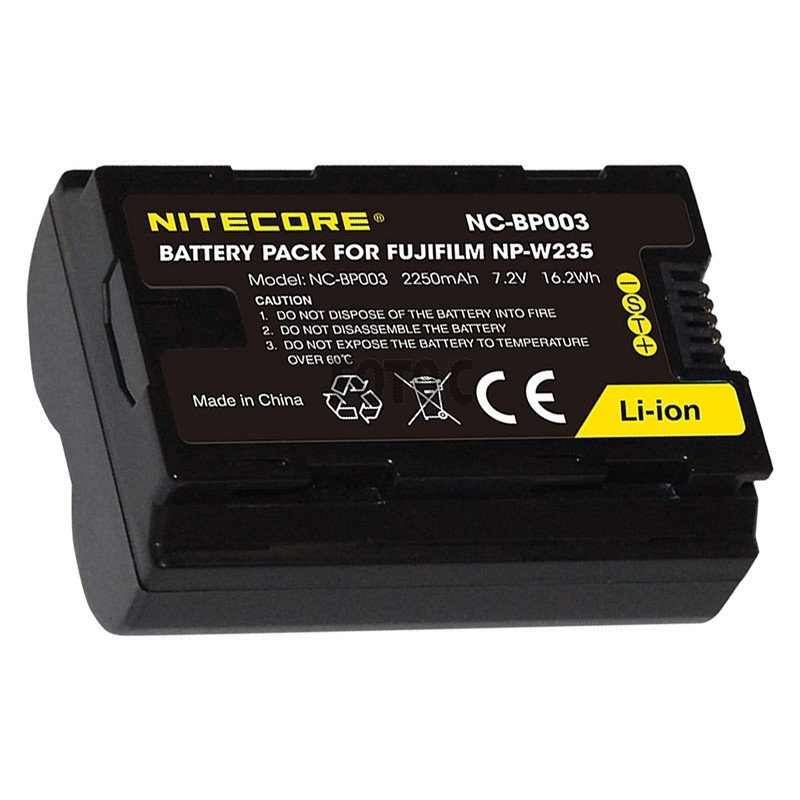 Batteri på 2.250 mAh, der passer til udstyr, der bruger Fujifilms NP-W235-batteri.