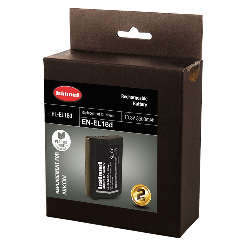 Dette erstatningsbatteri fra Hähnel har 6 % højere kapacitet end det originale Nikon EN-EL18D-batteri.