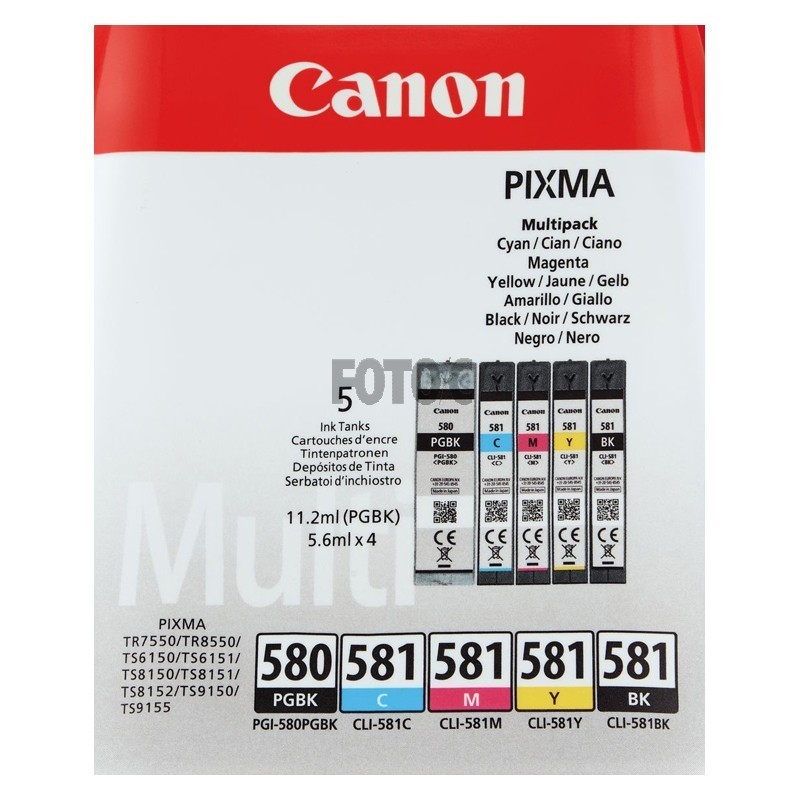 Original Canon PGI-580/CLI-581 multipakke med 4 farver og en pigmentsort.