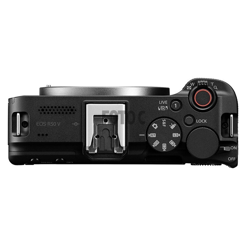 Canon EOS R50 V er et kompakt, spejlløst kamera med udskifteligt objektiv, designet specifikt til indholdsskabere og vloggere.