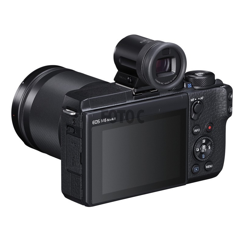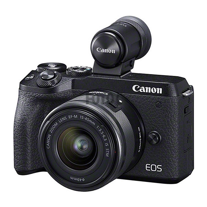 EOS M6 II kit med søger og 15-45mm objektiv. EOS M6 II er opbygget på en stor CMOS-sensor med 32,5 Megapixel opløsning, der giver fremragende resultater selv ved svag belysning eller ved høje kontrastforhold.