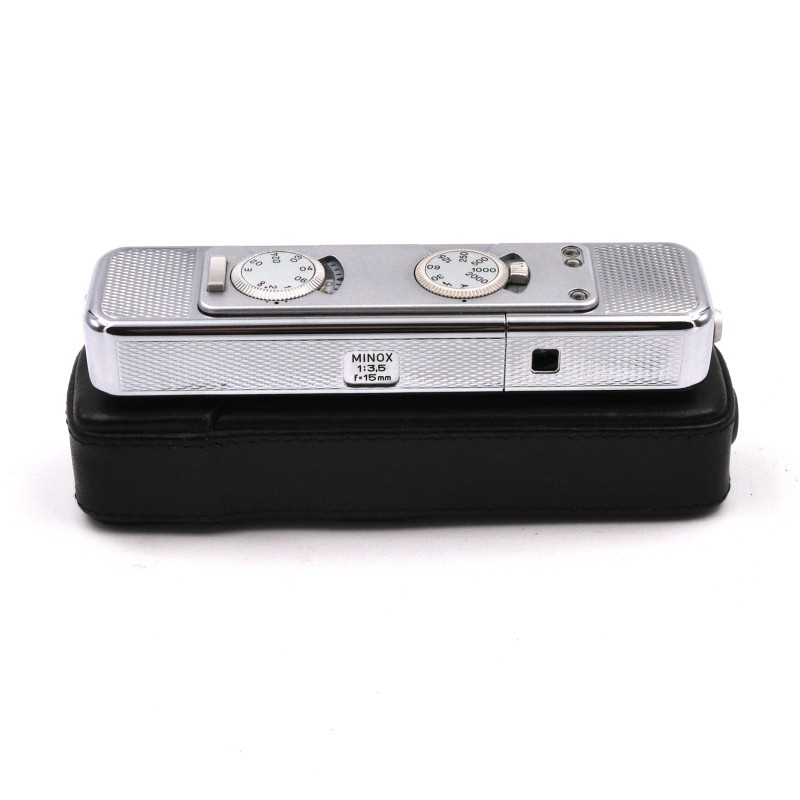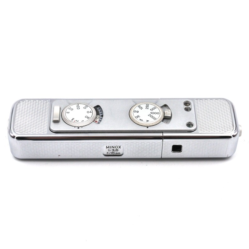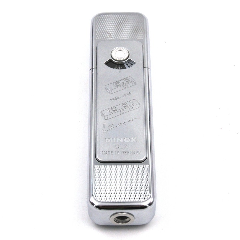 Sjælden jubilæumsmodel af Minox spionkameraet som fejrer kameraets 60 års jubilæum i 1998. Lavet i massiv messing med smuk blank krom overflade.