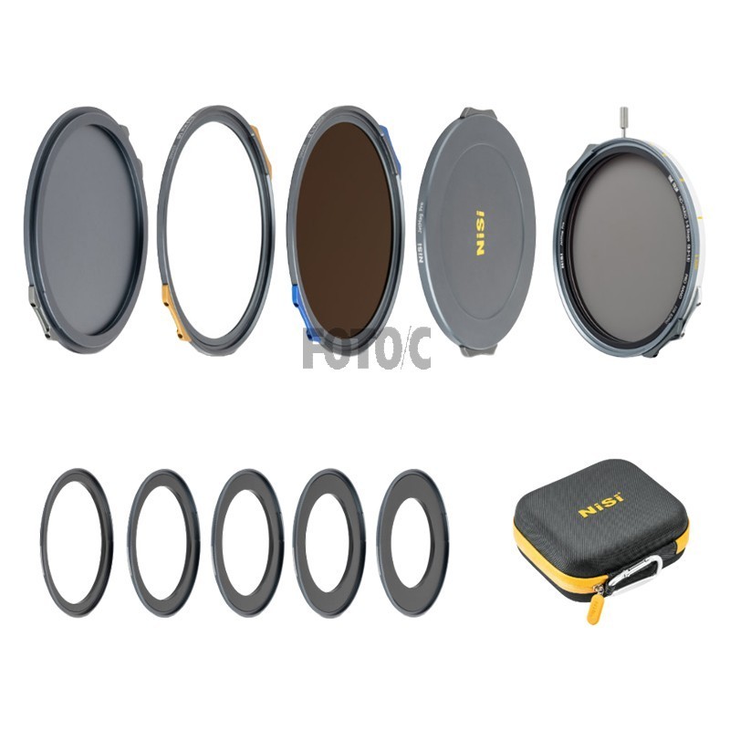 Der medfølger også fire magnetiske adapterringe (67 mm, 72 mm, 77 mm og 82 mm), magnetiske front- og bagkapper og en beskyttende caddy-pose til at holde alting organiseret, når man er på farten.