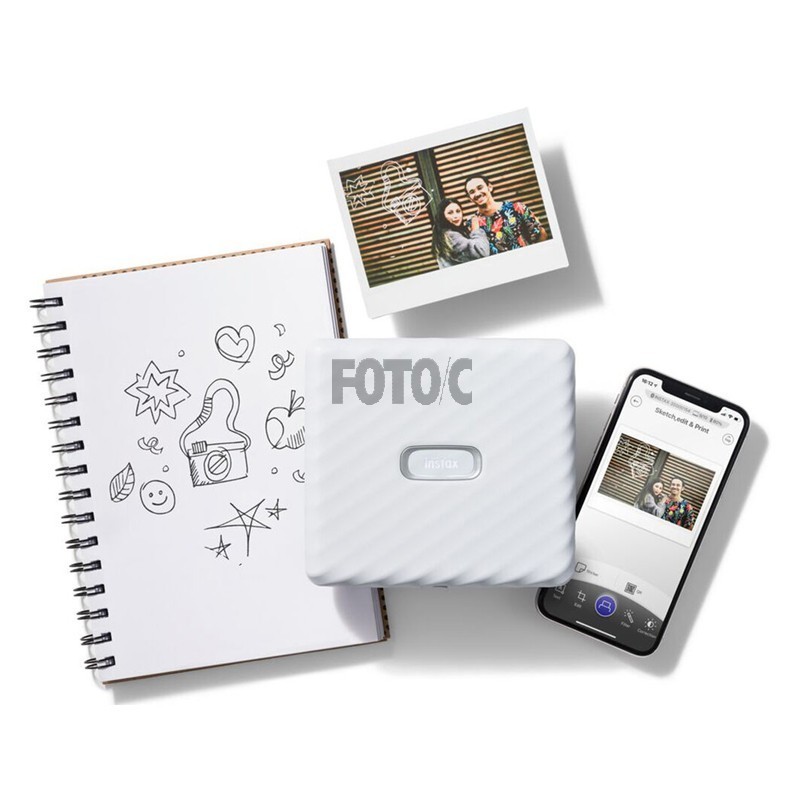 instax Link Wide printeren lader dig printe billeder i bredt format direkte fra din smartphone. Tag et billede, giv det din personlige flair med Sketch and edit-indstillingen, og print via Bluetooth med Instax Link Wide appen.
