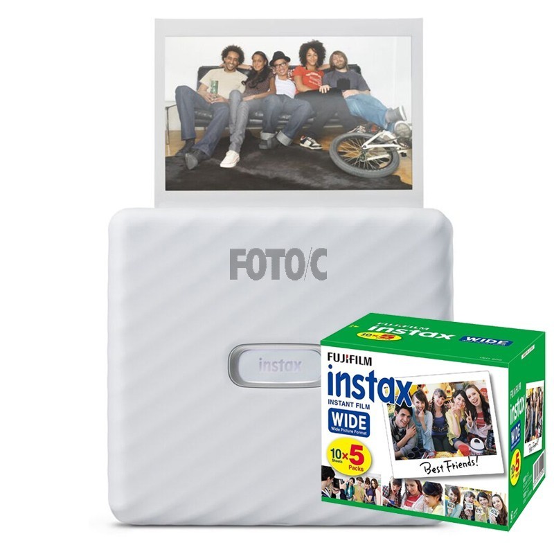 Printeren bruger instax WIDE series-film med en billedstørrelse på 62 mm x 99 mm (filmstørrelse 86 mm x 108 mm). Så billedet kan indeholde fantastiske landskaber og gruppe- og vennefotos.