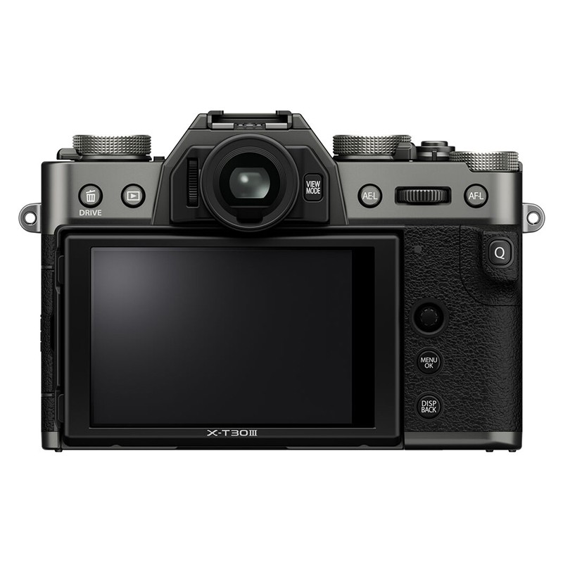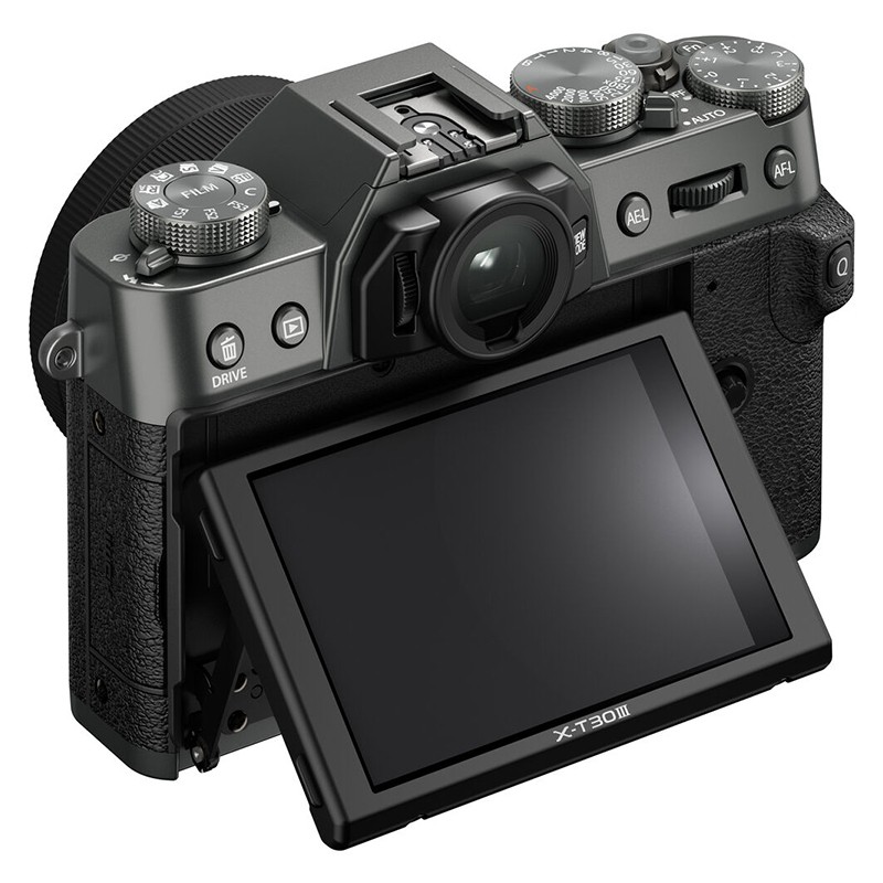 Det nye X-T30 III har en indbygget blitz, som er integreret med søgeren og justerer automatisk blitzstyrken for at give effektiv belysning ved svagt lys eller modlys. Kameraet er desuden udstyret med en LCD-skærm der kan vinkles og har 1,62 millioner pixels, der gør det lettere at komponere billeder fra både høje og lave vinkler – ideelt til rejser og landskabsfotografering.