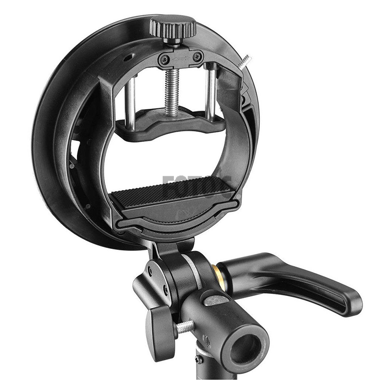 Universel holder til montering af diverse flashes på en bred vifte af studielamper med Bowens-mount.