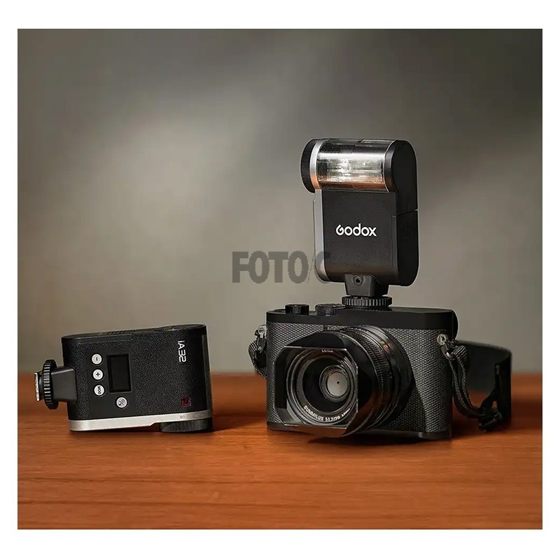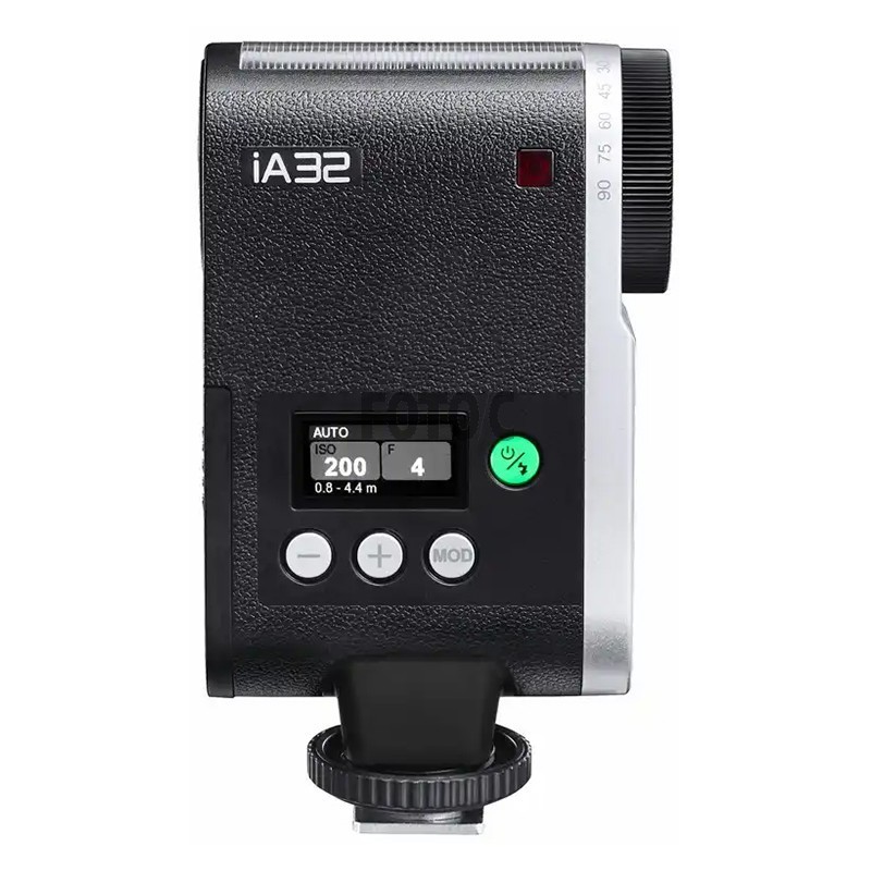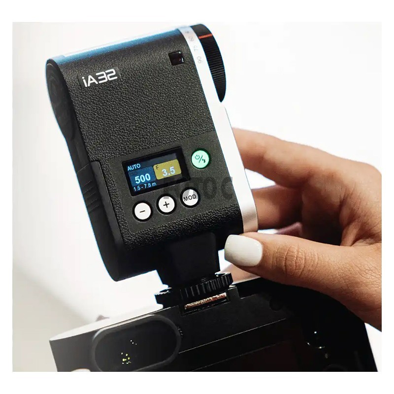 iA32 har et alt-i-en design med en flad krop og kompakt blitzhoved, hvilket gør det nemt at have den med på kameraet eller i tasken.