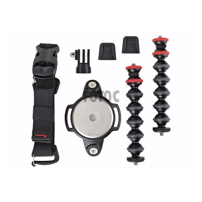 Et vippeled af GoPro-typen (pin joint) er også inkluderet, så du kan montere et actionkamera på en af GorillaPod-armene.