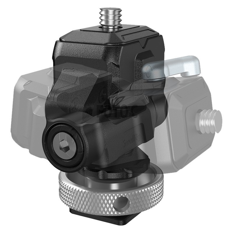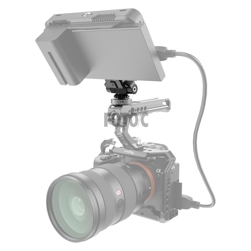 Locks into place via a cold shoe at one end and attaches to a monitor via a unique SmallRig quick release plate at the other end.