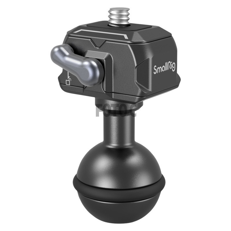 En quick-release plade med ball-head til den alsidige HawkLock Universal Mini-serie fra Smallrig. Velegnet til montering af ekstern monitor og andet udstyr.