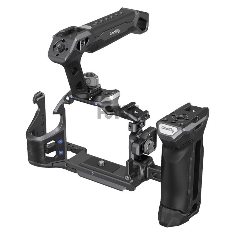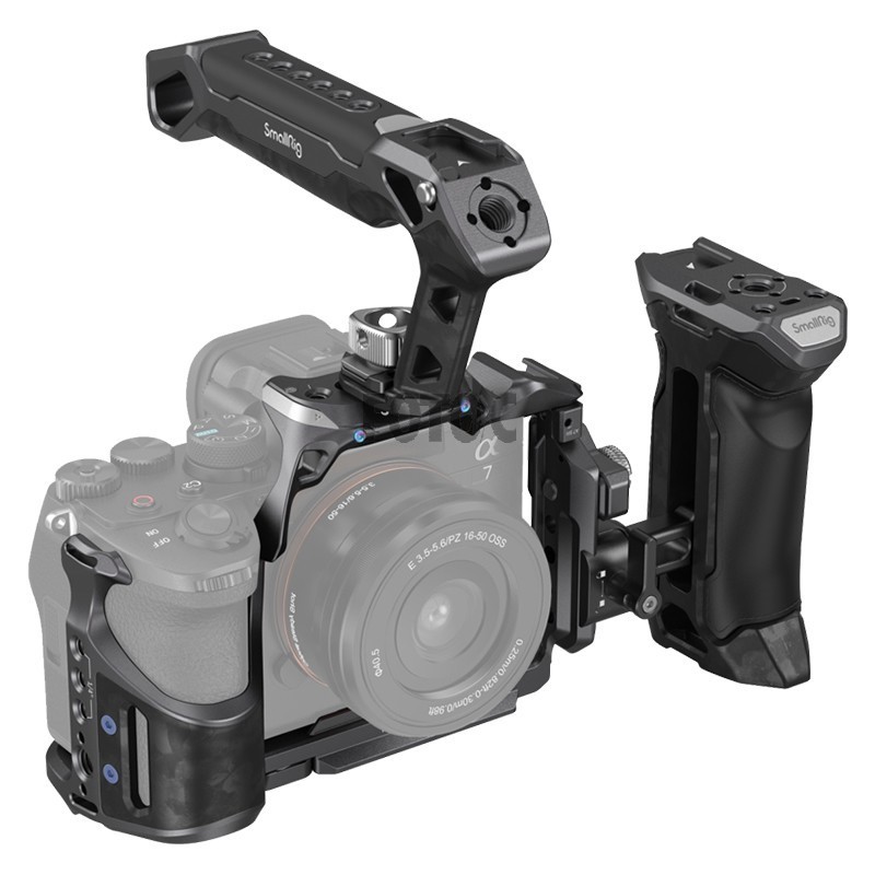 Rugged, Ultra-Lightweighted Construction in Carbon fiber! Designed to reduce burdens on arms, increase stability, protect camera, and provide accessory mounting points. The kit includes a cage, a top handle, a leather covered side handle and a HDMI cable clamp. Both the cage and the top handle are portable for being made of lighter carbon fiber, hence longer handheld shooting.