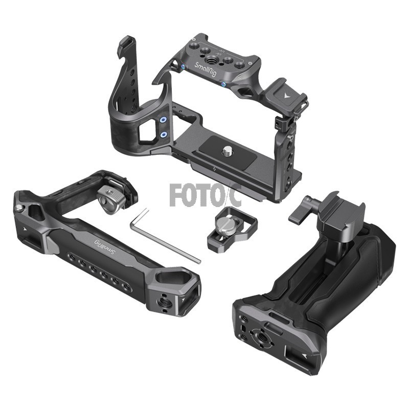 For the cage, a locating pin, a 1/4"-20 screw and a M2.5 screw together lock camera firmly.