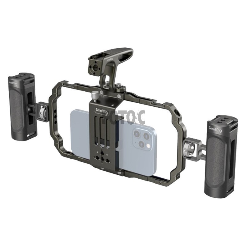 It includes a Universal Mobile Phone Cage 2791, two lightweight Side Handles (2772) and a Lightweight Mini Top Handle 2756. A perfect cage-kit for vlogging, live streaming, and mobile filmmaking.