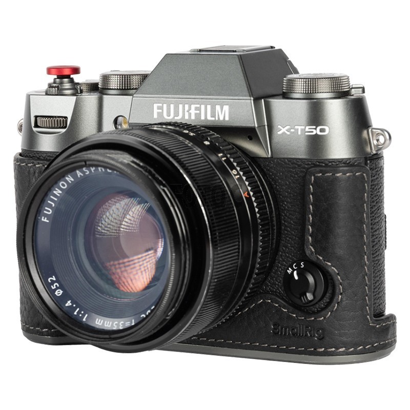 Half Case i læder til Fujifilm X-T50. Designet til at beskytte kameraet samtidig med, at der er adgang til alle funktioner.