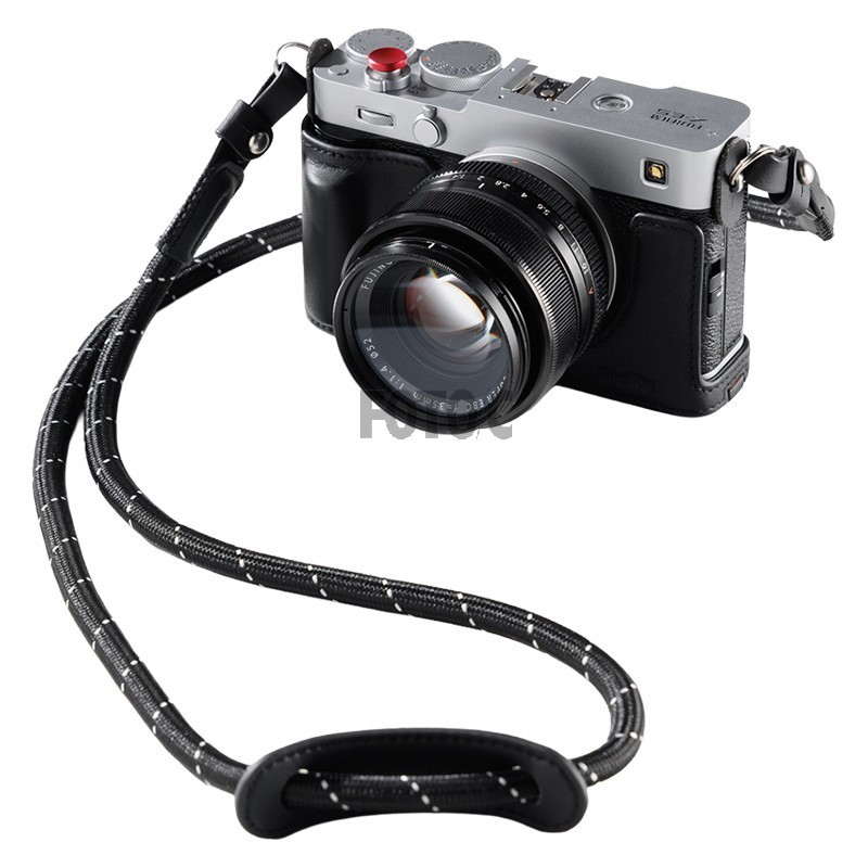 Det slidstærke og åndbare topkornede lædermateriale i det halve etui beriger kameraets retro-æstetik og -følelse, mens ruskindsforingen sikrer beskyttelse mod ridser.