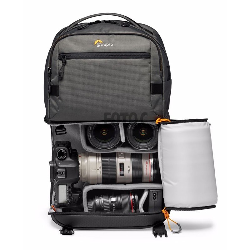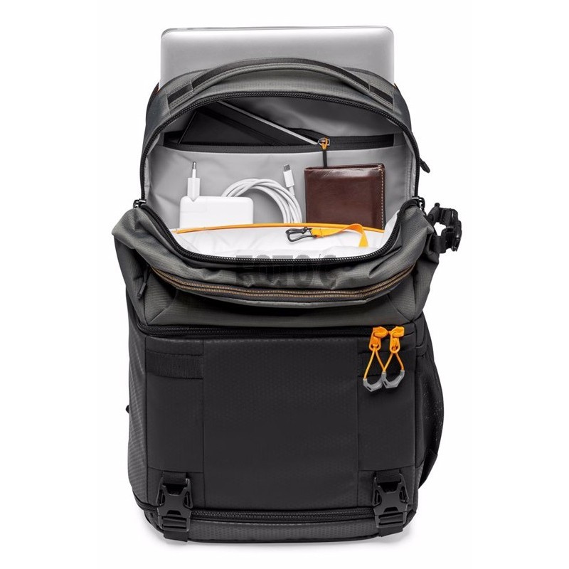 Rummer et pro spejløst eller pro DSLR med udvidet greb samt 2-3 ekstra objektiver og en 15” laptop.. Er også velegnet til en sammenklappelig drone med fuldt tilbehør samt en Ipad.