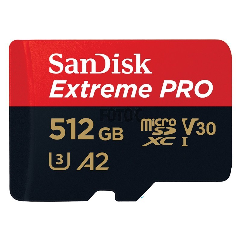 SanDisk 512GB PRO microSDXC-hukommelseskort med SD-adapter leverer en læsehastighed på op til 200 MB/s og en skrivehastighed på op til 140 MB/s, hvilket muliggør optagelse af højopløselige 4K UHD-videoer.