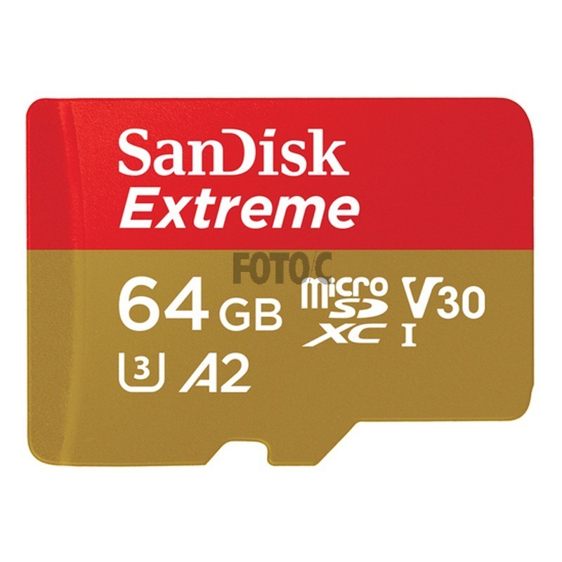 SanDisk 64GB microSDXC-hukommelseskort med SD-adapter har en læsehastighed på op til 170 MB/s og en skrivehastighed på op til 80 MB/s, hvilket gør det ideelt til optagelse af højopløselige 4K UHD-videoer.