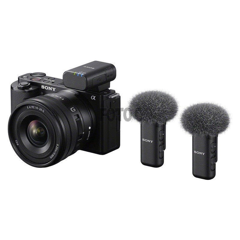 Strømmen leveres direkte fra α™-seriens digitale kameraer med udskiftelige objektiver eller vlog-kameraer til receiveren.