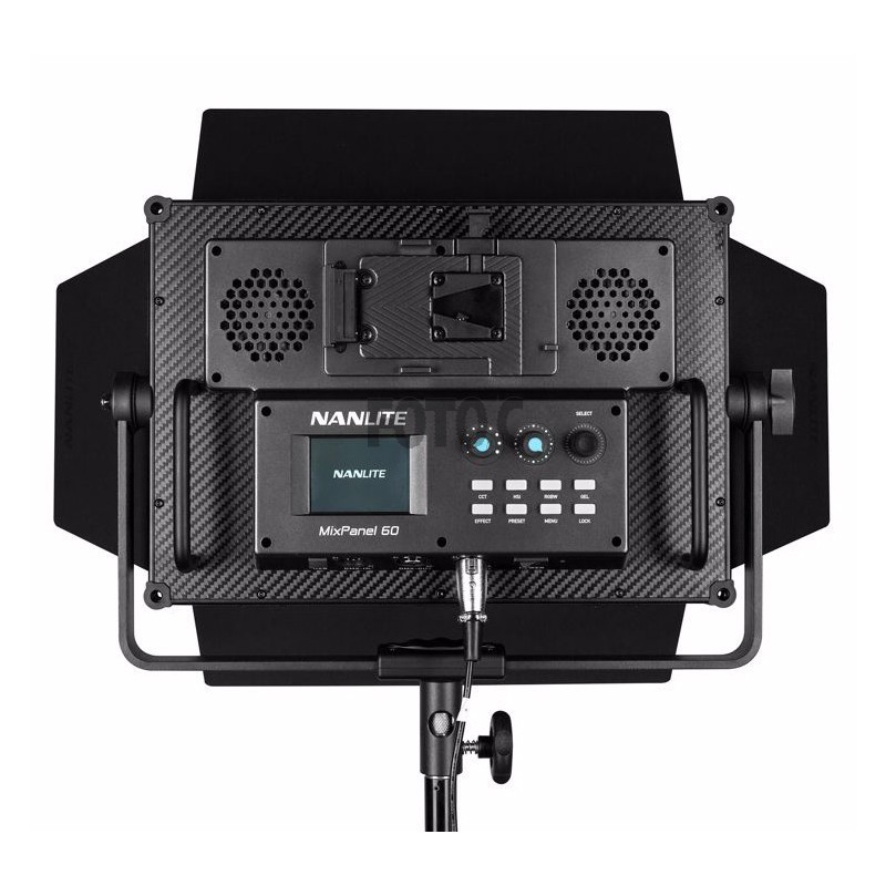 Et armatur, der er i stand til at skifte mellem et traditionelt multi-LED-panel til hårdt lys, et diffust SMD LED-panel til blødt lys og et RGB-panel til farverige, kreative effekter med et tryk på en knap.