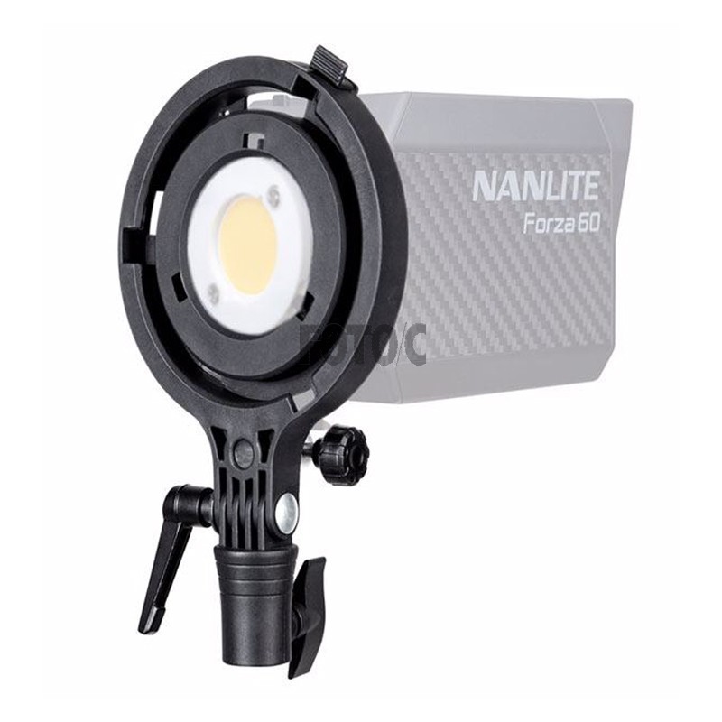 Bowens monteringsadapter til Forza 60 inkluderer også et paraplystangbeslag til brug af paraplyreflekser og diffusorer.