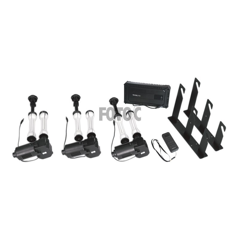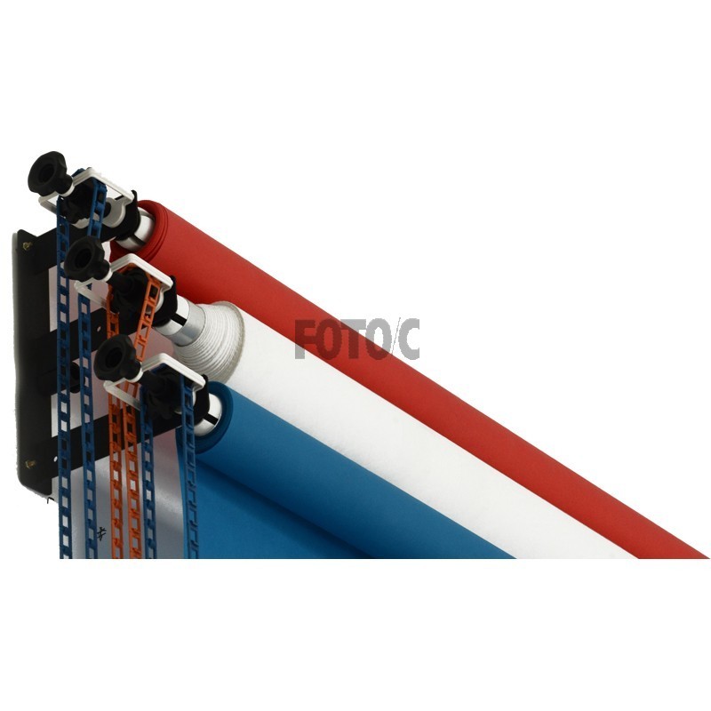 Til betjening af 3 stk. baggrundslærred. Kan monteres på stativ, i loftet eller på væggen.