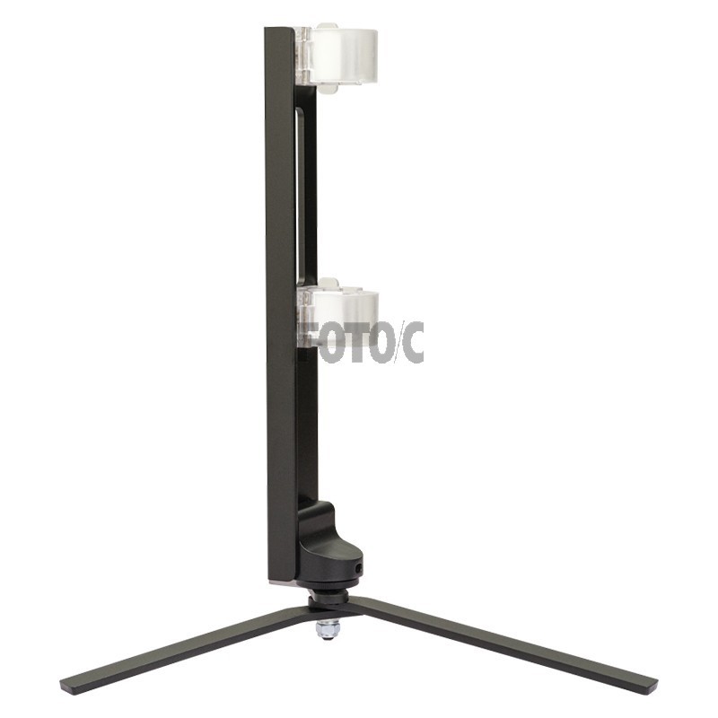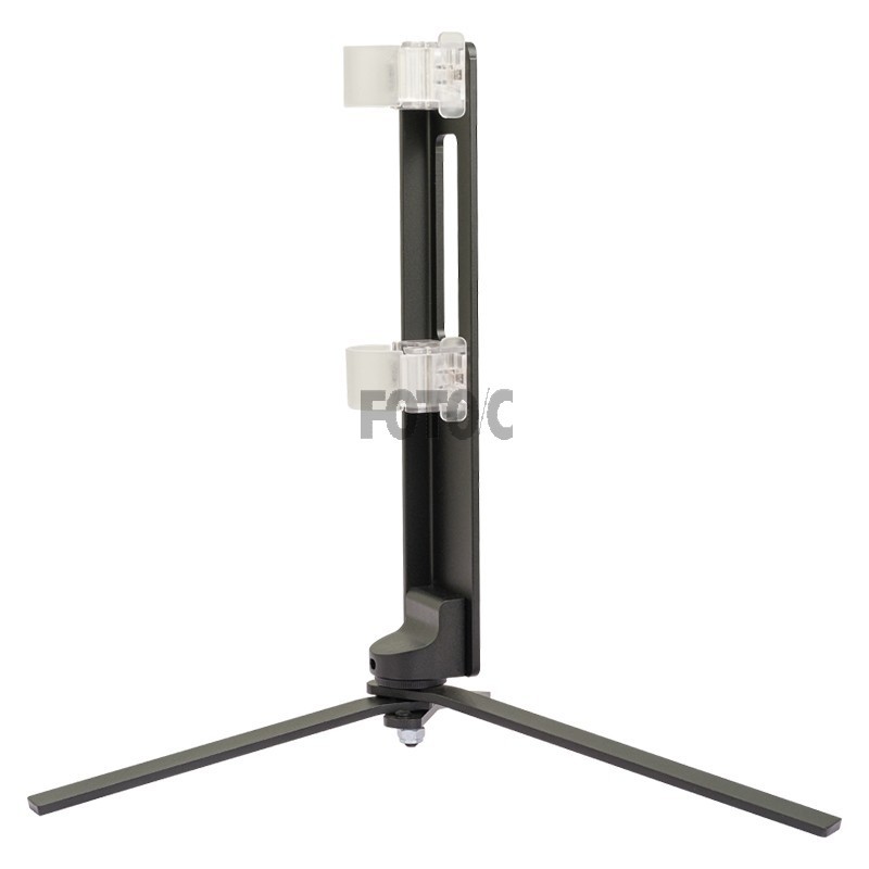 This is a foldable floor stand from Nanlite that was designed to stably hold any T12-sized tube light up to 4-feet in length in a vertical, free-standing position. Two transparent clips hold the light firmly in place, which means it's fully compatible with the PavoTube 15C and 30C. Enough room is provided underneath the light for a power cable, as well as the CB-DMX-ACP-1/2 adapter DMX cable that's sometimes used with the PavoTube II 15X and 30X. A window on the back of the upright support allows you to see the display of the attached tube light when mounted. The upright support and legs are made of metal, and they can be detached from one another. The legs fold compactly and for travel and storage. This stand is also referred to by the model name: LSFLT12MII.