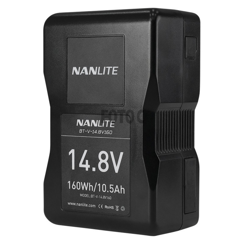 Kompatibel med: MixPanel 60, Forza 60/60B, Forza 300/300B NANLITE BT-V-14.8V160 V-Mount-batteriet giver 3 timers driftstid ved fuld effekt til et NANLITE Mixpanel 60 eller et Forza 60/60B. Et par af disse vil give op til 64 minutters driftstid på en Forza 300/300B.
