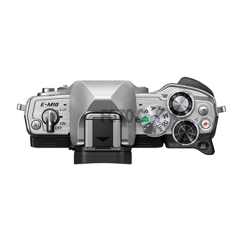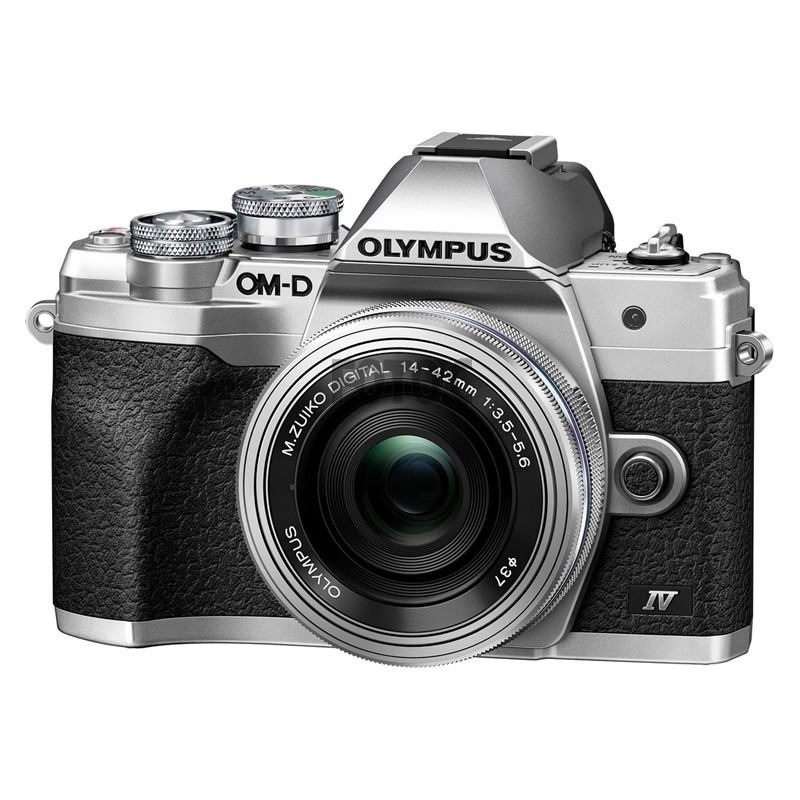 E-M10 Mark IV kit med 14-42mm EZ objektiv. 20MP Live sensor med 4K video og 5-akset stabilisering. Vipbar touch display.