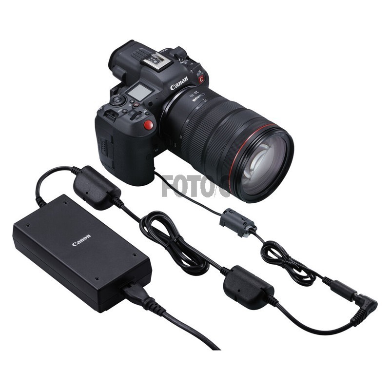 Giver mulighed for at tilslutte EOS 5C til ekstern A/C-strømforsyning, når der optages video i 8K60 RAW.