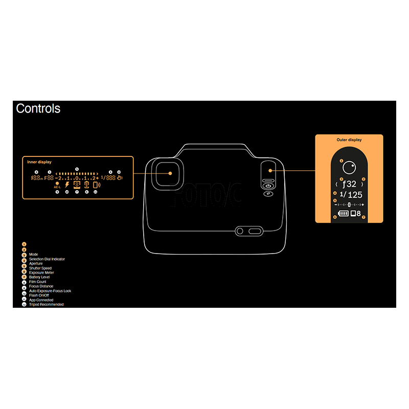 Polaroid I-2 har indbyggede manuelle kontroller, som kan overvåges via den integrerede søger og LCM-displayet. Tjek og juster dine: