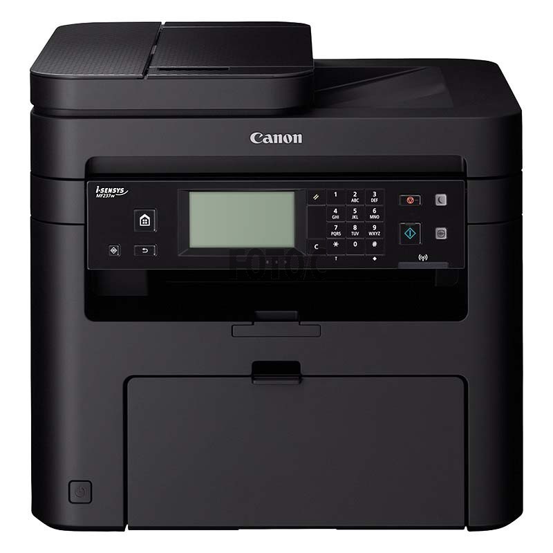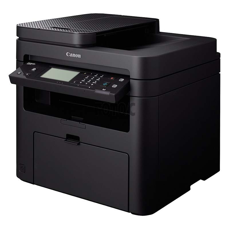 En original 4-i-en monokrom multifunktions laserprinter fra Canon, printer, scanner, faxer og kopierer i sort/hvid.