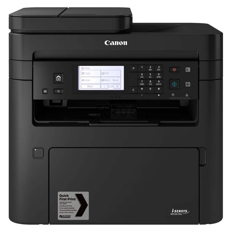 En 4-i-én sort/hvid multifunktions A4 laserprinter, der printer, scanner, faxer og kopierer.
