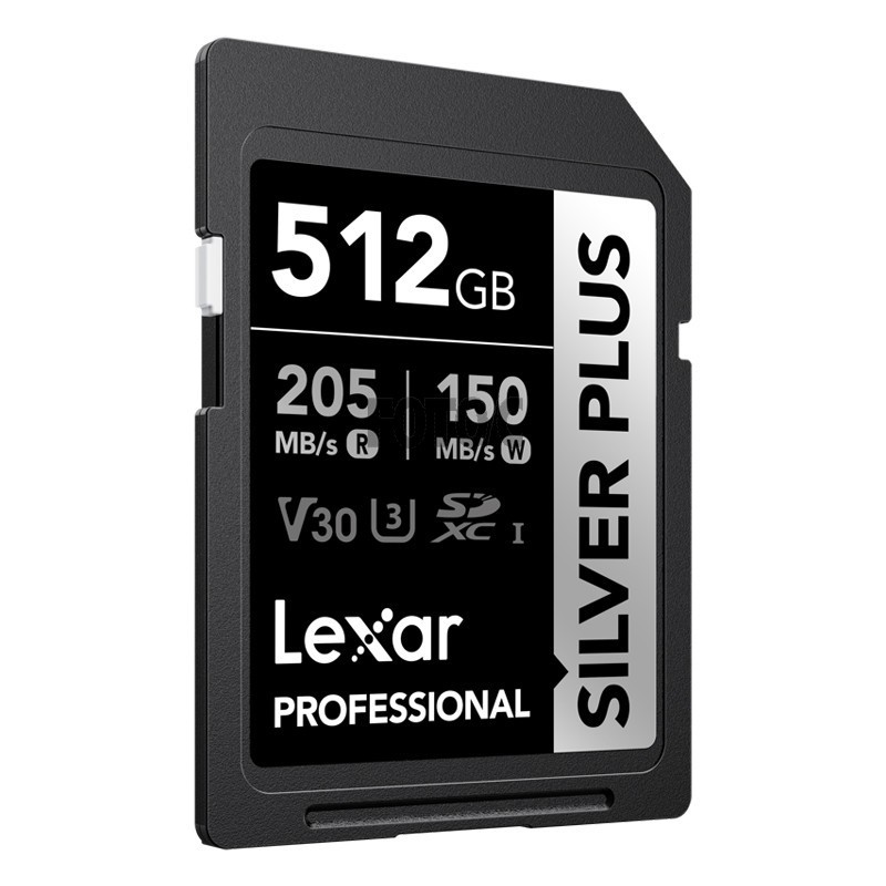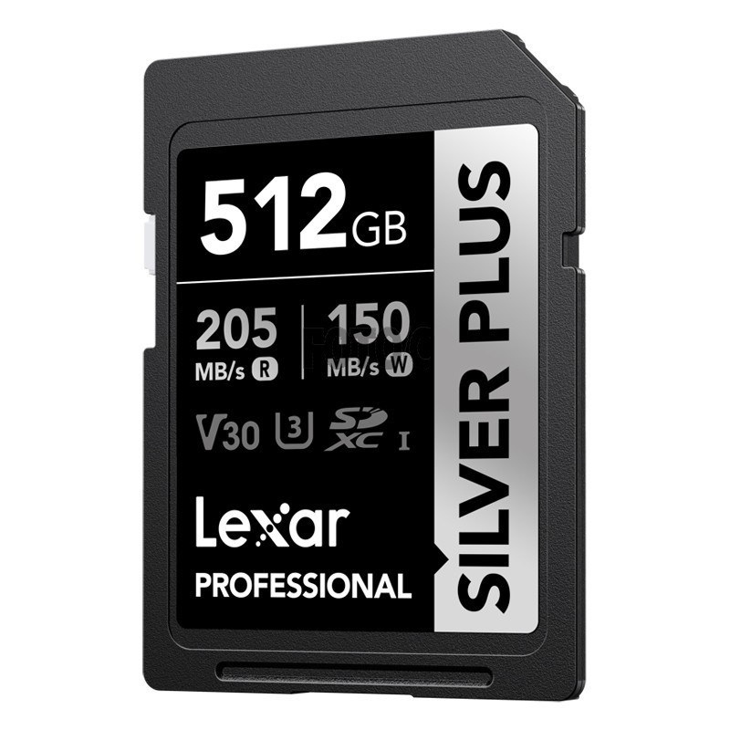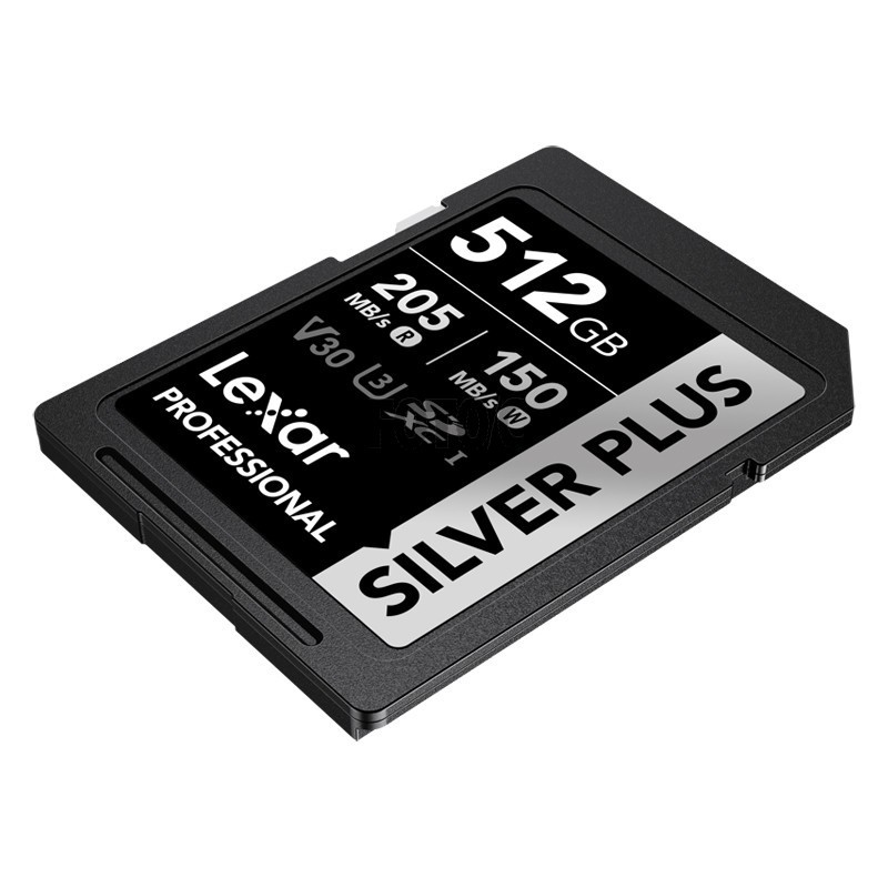 Lexar Professional SILVER PLUS SDXC UHS-I-kortet har læse-/skrivehastigheder på hastigheder på op til 205 MB/s og 150 MB/s og understøtter problemfri optagelse af FULL-HD- og 4K-videoer.