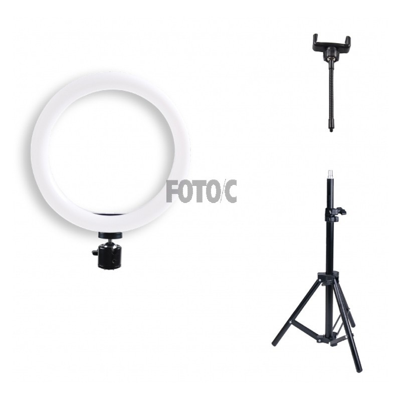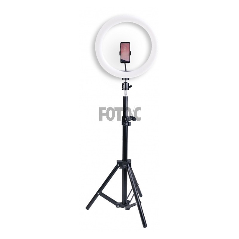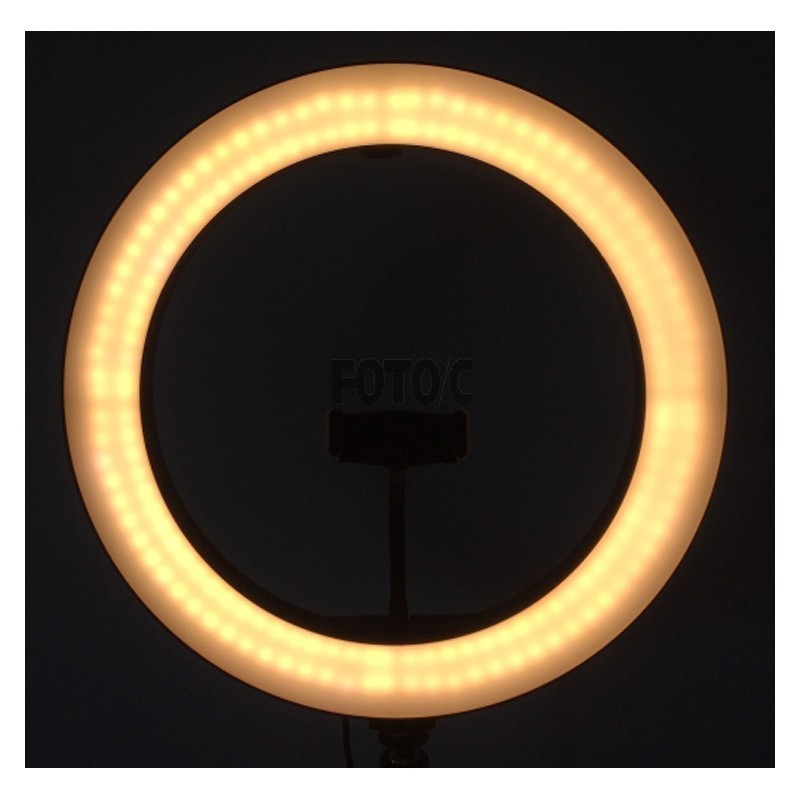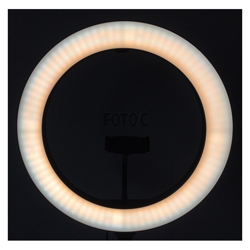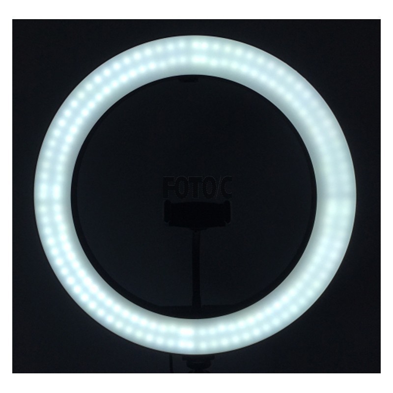 En 26 cm bred ring-LED-lampe giver perfekt belyste optagelser. 120 LED-pærer leverer i alt en effekt på 12 watt.