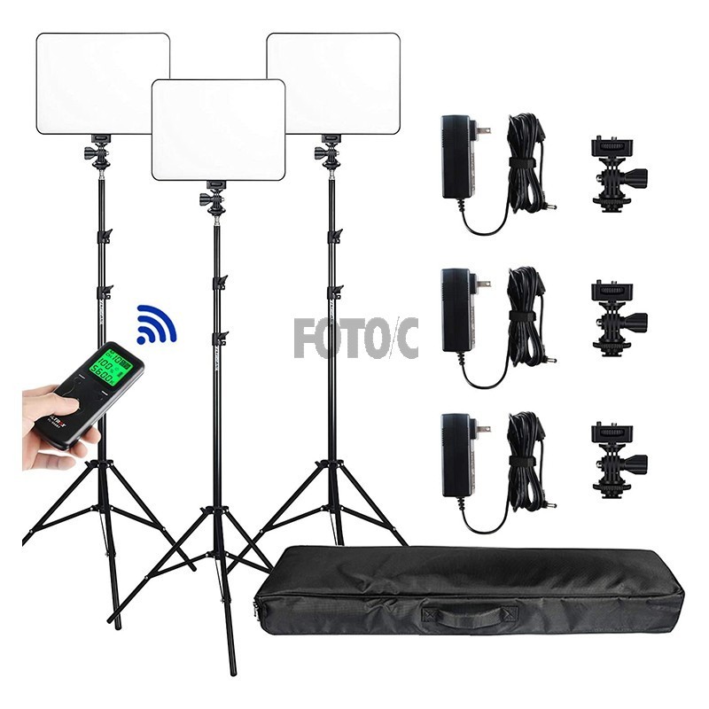 Kompakt og bærbart lampesæt med 3 Bi-color LED-lamper med 192 LED-dioder.