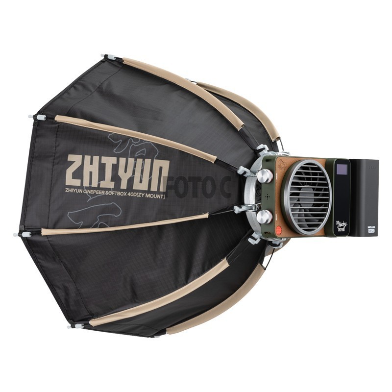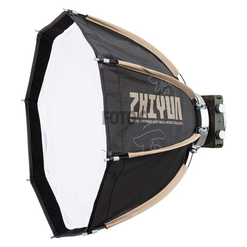 ZHIYUN Softbox 40D bruger ZHIYUNs egen ZY-fatning og giver et større område med blødt lys samt forbedret farvegengivelse.