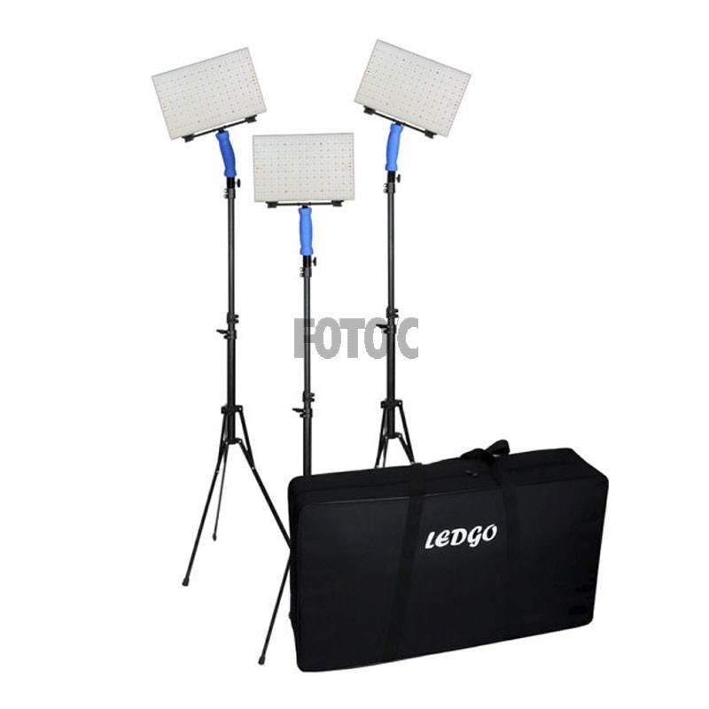 Komplet kit indeholdende 3 stk. Ledgo LG-B560, 3 stk. belysningsstativer, 3 stk. AC-adaptere til tilslutning af samtlige lyskilder til netstrøm, samt batteriadaptere til brug af Panasonics genopladelige videobatterier i CGR-D-serien. En praktisk opbevaringstaske til hele udstyret medfølger også.
