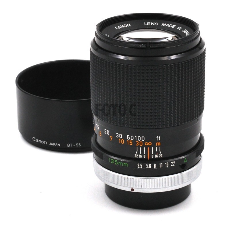 Vintage teleoptik til Canon analog SLR (FD mount). God til portrætter mv. Inklusiv modlysblænde.