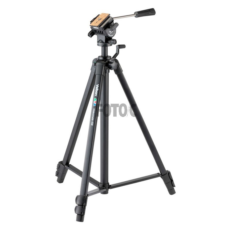 Velbon Videomate 438 har midtersøjle med håndsving, ergonomiske udformning af monteringen, skridsikre gummifødder.