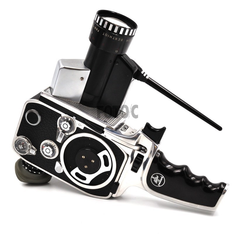 Med lækkert håndgreb og SOM Berthiot Pan Cinor 8-40mm f/1.9 zoom med reflekssøger og lysmåler.